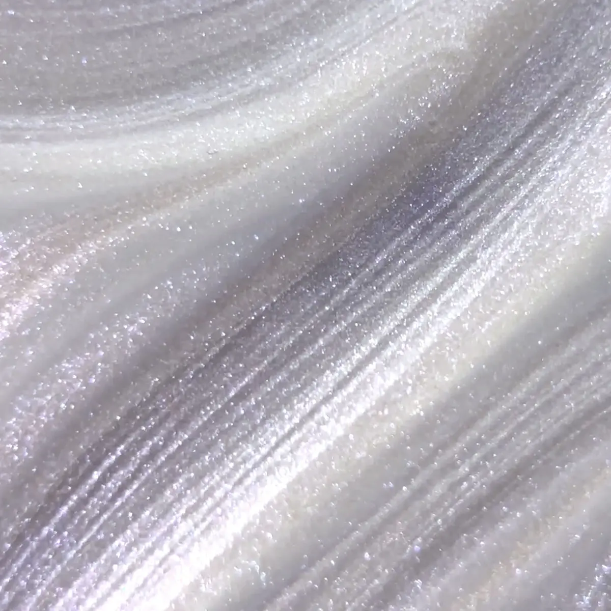 Jasny, mleczny pastel z subtelną, perłową poświatą wpadającą w delikatny fiolet. W świetle pojawia się liliowy refleks, który sprawia, że kolor wygląda jak miękka, świetlista chmura otulająca paznokieć.