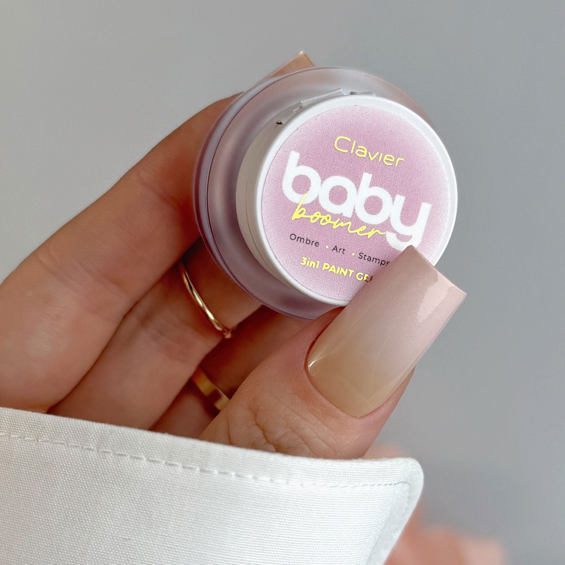 Baby Boomer, to innowacyjne rozwiązanie dla stylistek paznokci, które oczekują maksymalnej funkcjonalności i komfortu pracy. Żel 3w1 Nailsology Clavier został zaprojektowany z myślą o trzech najpopularniejszych technikach zdobienia paznokci: ombre (baby boomer), nail art oraz stamping. Jeden produkt – niezliczone możliwości stylizacji.
