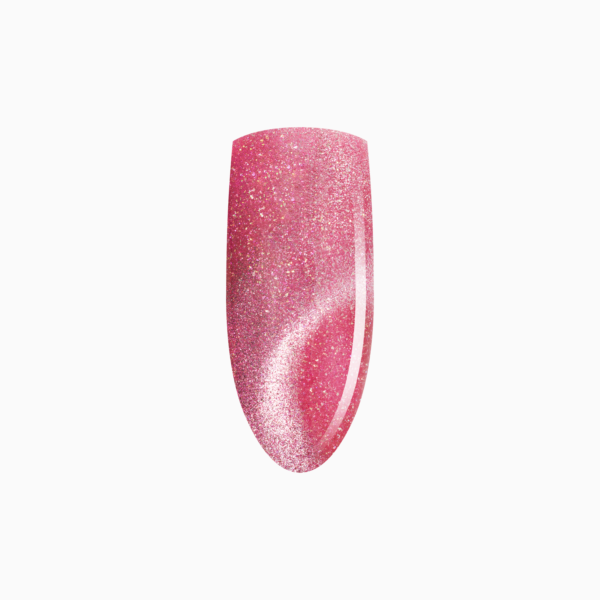 OYSTER Cat Eye 7ml to lakier hybrydowy cat eye w ciepłym, intensywnie różowym odcieniu ze złoto-różowymi drobinkami i magnetyczną smugą światła. Daje energetyczny, wyrazisty efekt, ale nadal utrzymany w dopracowanej salonowej estetyce.