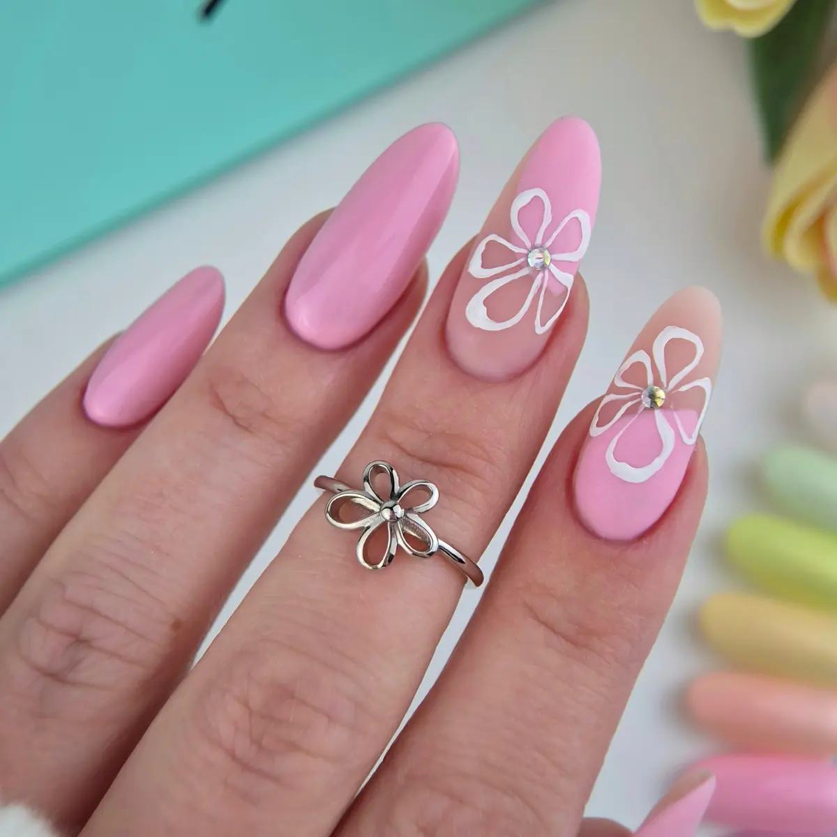 Pastelowy, nasycony róż z miękkim rozświetleniem. Promienny i harmonijny, dodaje stylizacji wiosennej energii.
