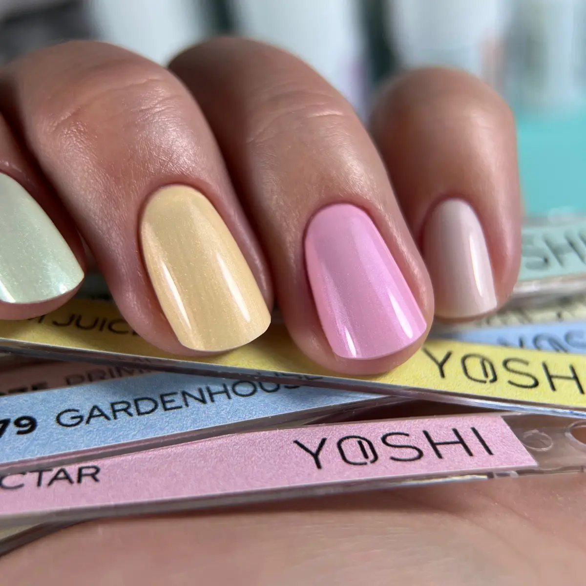 Botanic Awakening to dziesięć pastelowych lakierów hybrydowych inspirowanych momentem, w którym wszystko zaczyna się od nowa. Każdy z odcieni ma w sobie delikatną drobinę, jakby zatrzymał na powierzchni pierwsze światło dnia. To wiosna uchwycona w jej najczystszej formie: jasna, świeża, pełna subtelnych niuansów.