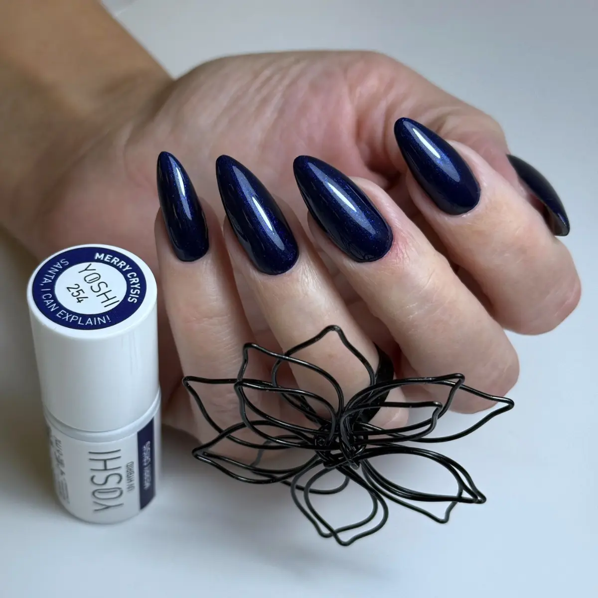 Granatowy odcień z lekkim metalicznym refleksem. Elegancki jak Twoje spojrzenie, kiedy udajesz spokój, choć światełka jak co roku się splątały, barszcz wykipiał, a kolejka po karpia ma długość ekspresu z północy. Lśniący, głęboki i niepokojąco spokojny. Jak cisza przed kolejnym grudniowym dramatem.