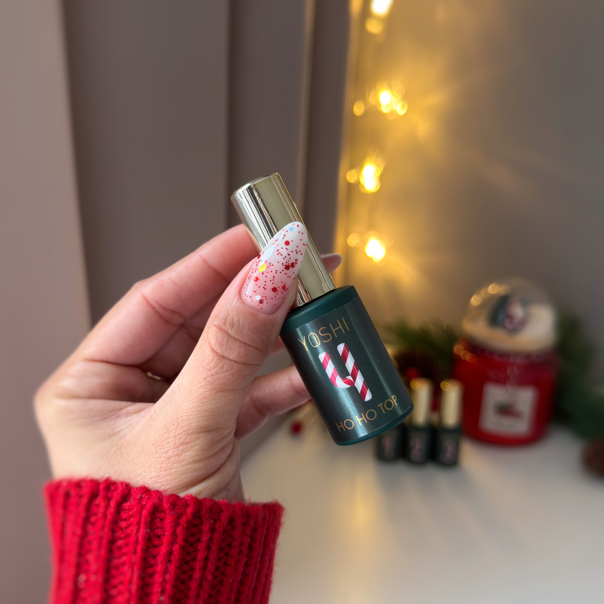 Święta mają swój blask… i właśnie ten blask zamknęliśmy w czterech limitowanych topach HO HO TOP YOSHI. Każdy z nich to inny sposób na grudniową magię: trochę światełek, trochę śniegu, odrobina świątecznego chaosu i mnóstwo błysku. Wystarczy jedna warstwa, by zwykły kolor zamienił się w świąteczną stylizację, która będzie trwała i piękna.